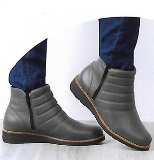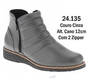 Coturno Couro Cinza Cano 12cm 2 Zipper