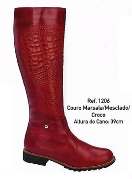 Couro Marsala Mesclado Croco - Cano Alto 1206 39cm